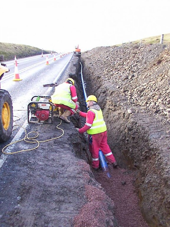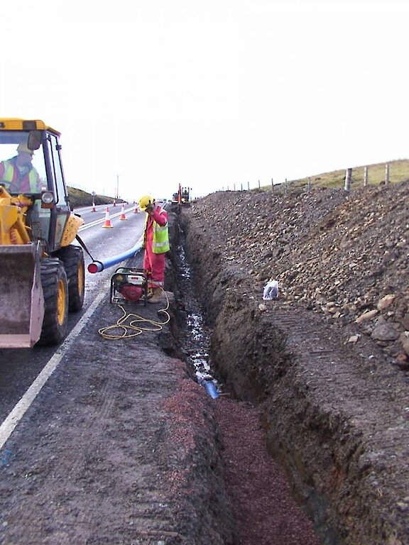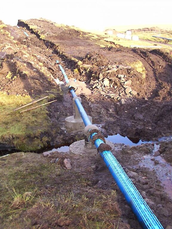 Completed works comprised the upgrading of the water treatment works (WTW) in Bressay, Shetland. The Scheme involved the maining out the island of Bressay, via 2600m of 180mm HPPE mains and 420m of 125mm HPPE subsea pipeline sleeved in ductile iron protectors, with treated water from Sandy Loch WTW in Lerwick via the existing storage tank sited at South Staney Hill. Finally the installation of 5000m of 125mm HPPE through Bressay to Bressay WTW.