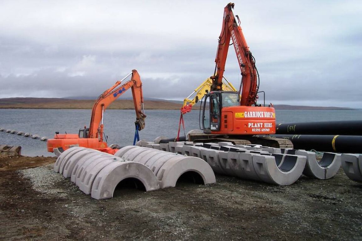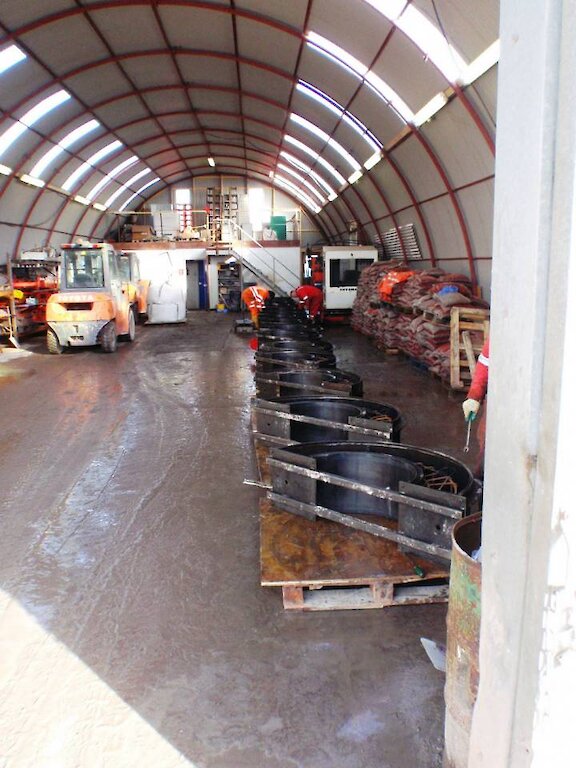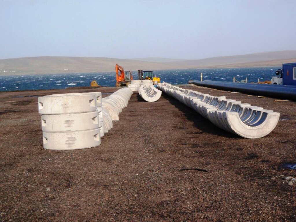 Pipe collars required to sink the HPPE pipe to sea bottom and to hold in place until covered. Completed works consisted of the fabrication of steel shutters to accommodate the concrete and steel reinforcement, a total of 456 nr pipe collars were pre cast and installed onto the HPPE pipes, rubber padding was installed onto the inside of precast concrete collars to prevent slippage from the pipe once the floating pipe is sunk.