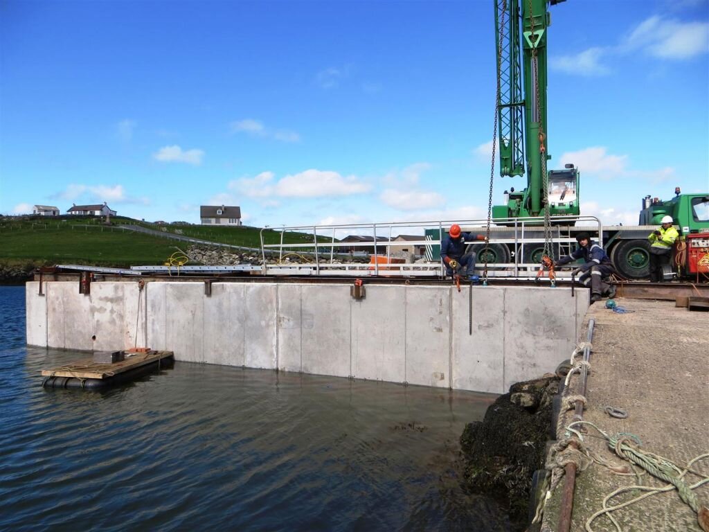 Reclamation of existing foreshore using imported rockfill and armour stone protection, construction of new concrete quay with new pontoon and gangway. A new caravan pitch area in concrete suitable for four caravans will also be created.