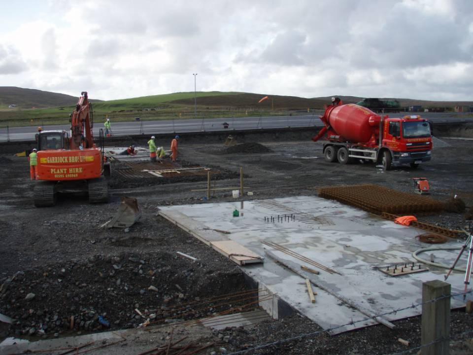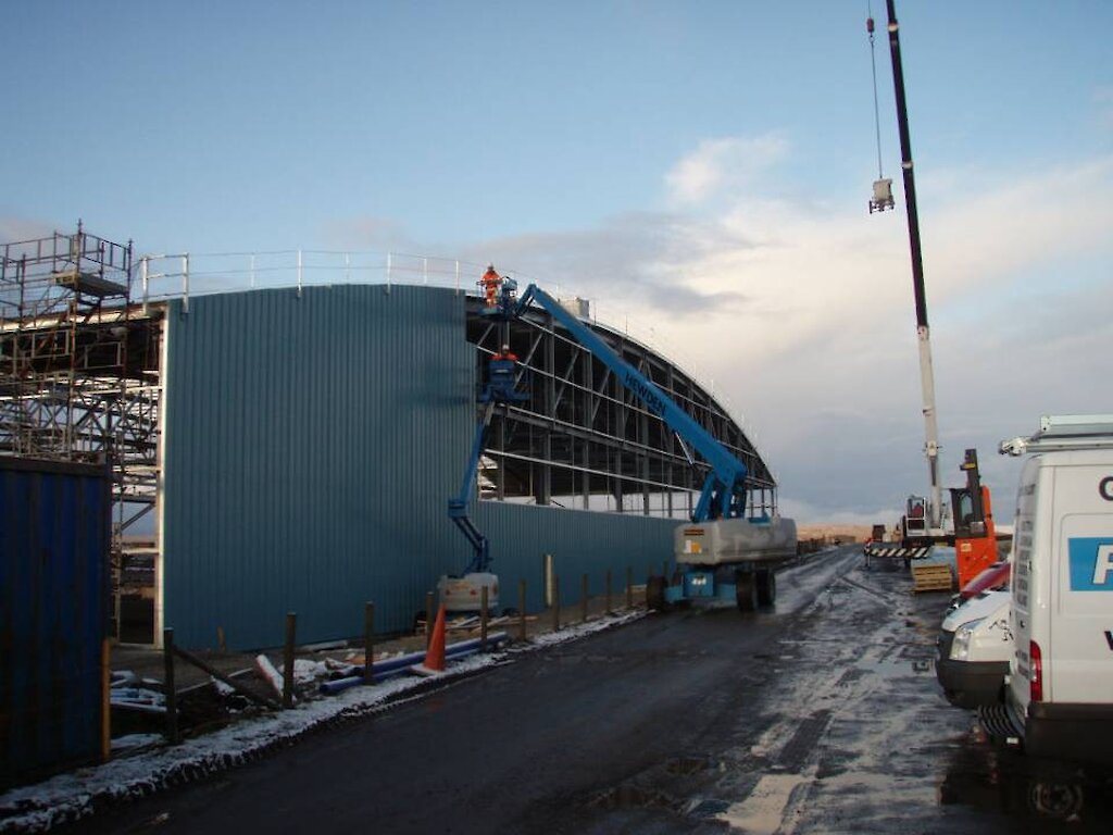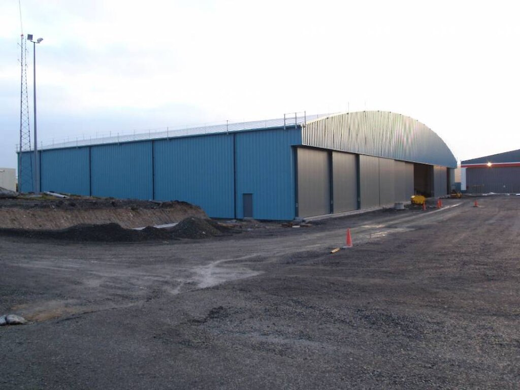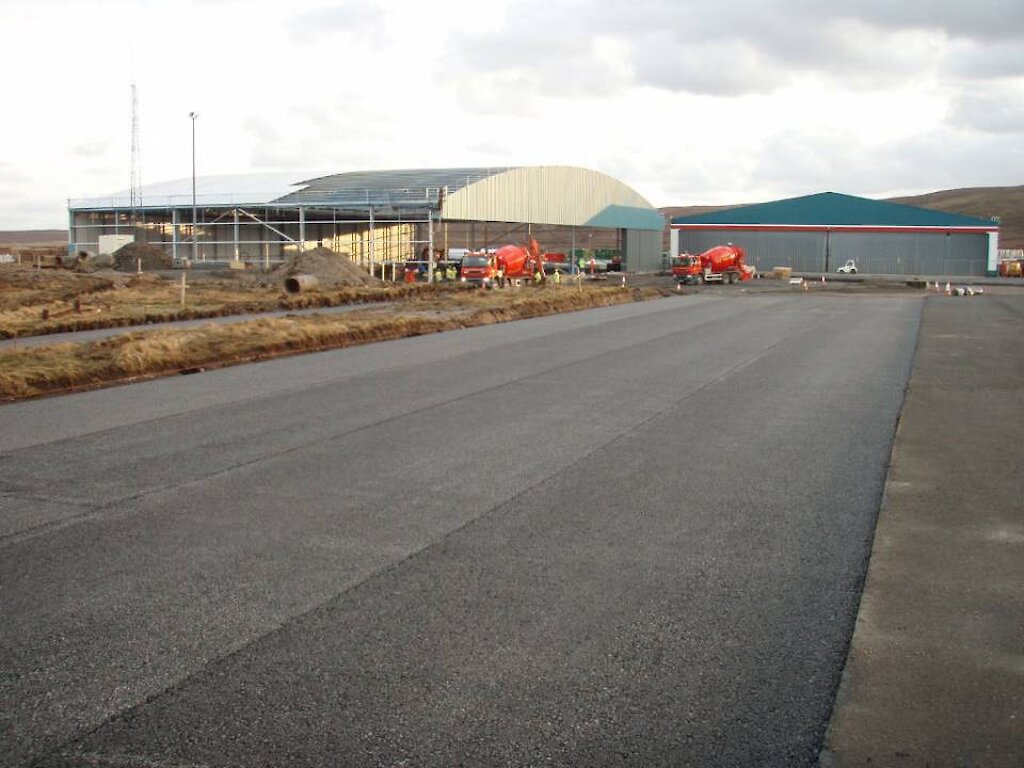 The work comprised of a new hanger building together with modifications to the existing apron area, located at Scatsta Airport 17 miles north of Lerwick and serves Sullom Voe Oil Terminal.