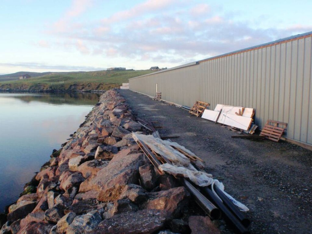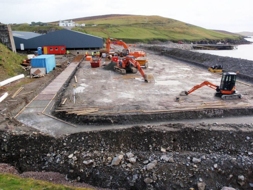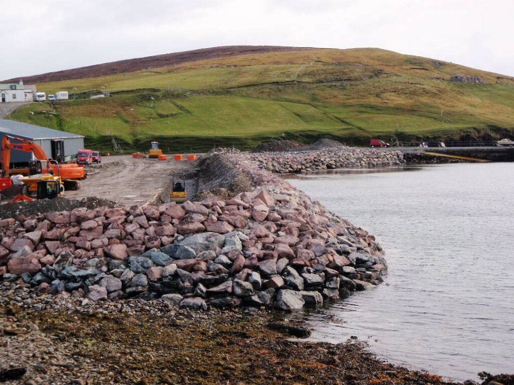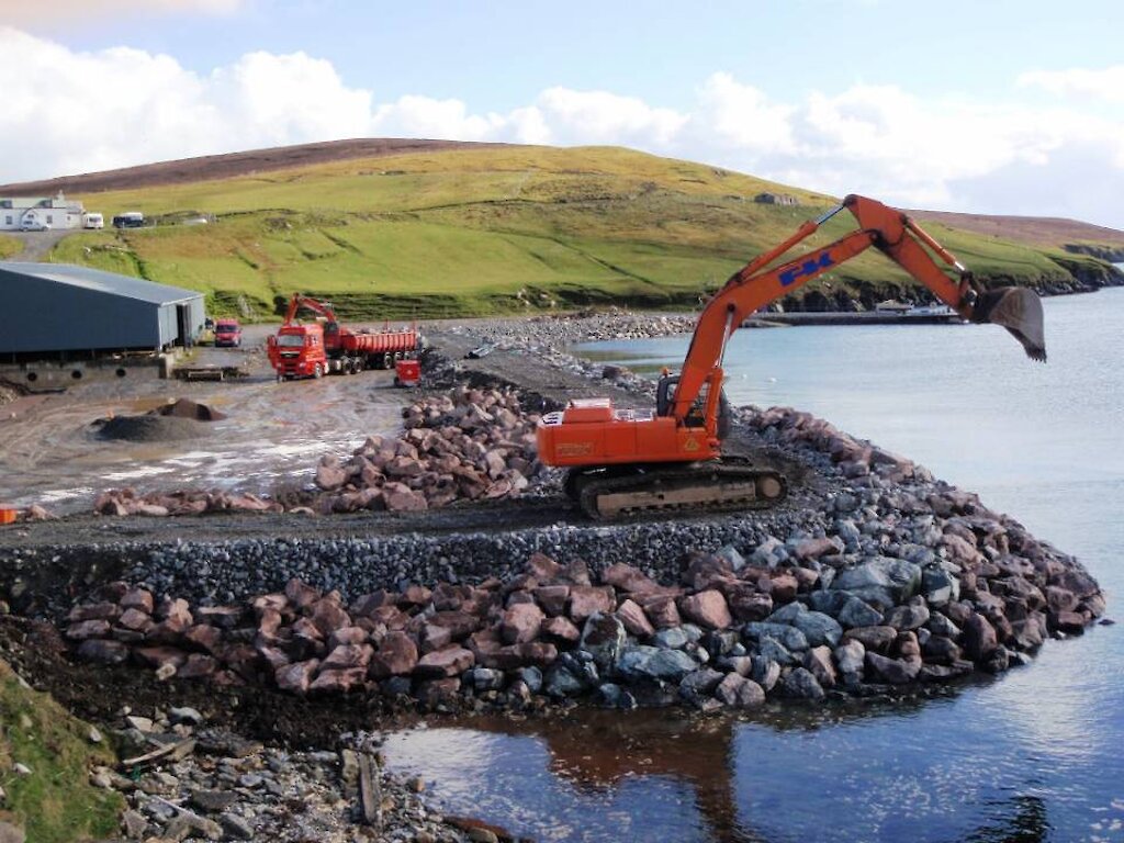 Reclamation of additional ground from the sea including infilling, geotextile & rock armour. Excavation & construction of foundations for new buildings. Excavation & construction of concrete bio-reactor tanks. Civil works associated with the installation of below ground GRP tanks.Underground service pipes and cable tracks. Above ground civil and building works.