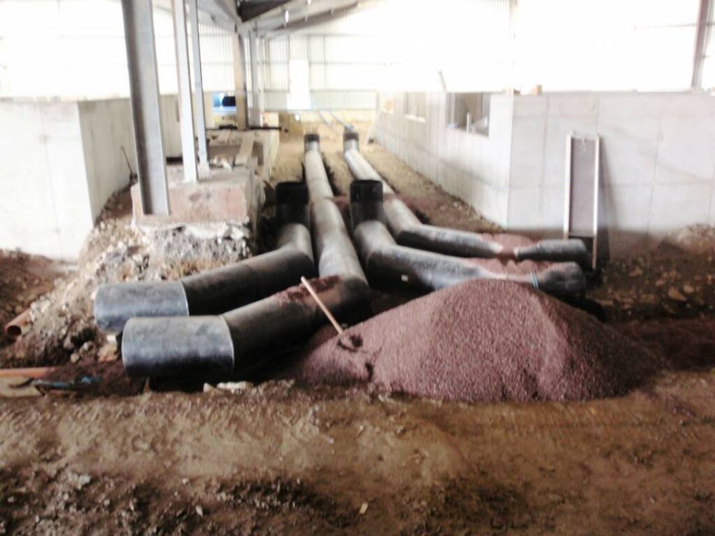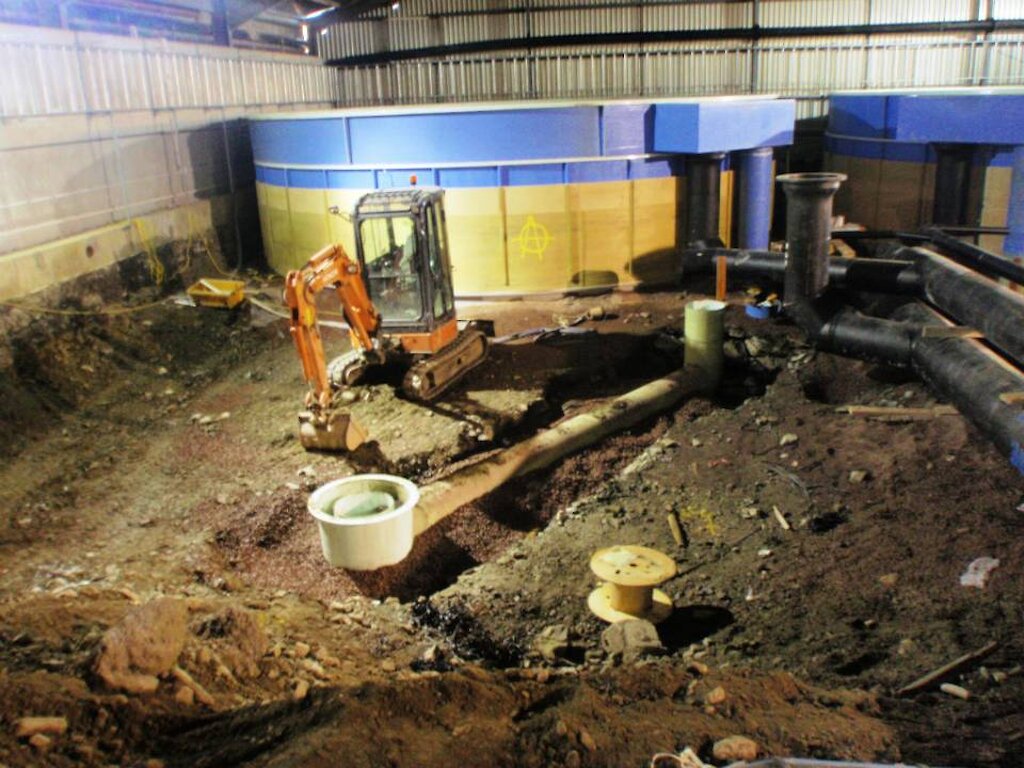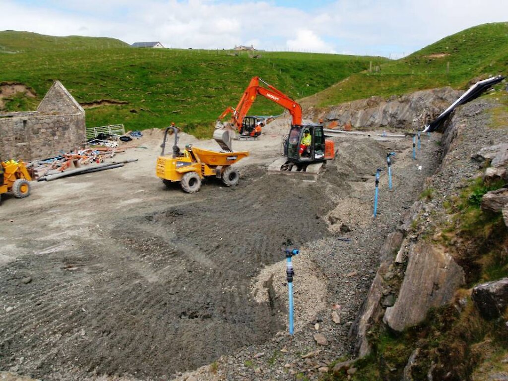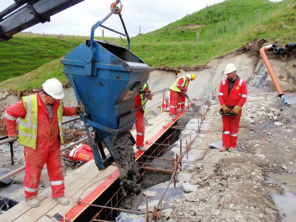 Reclamation of additional ground from the sea including infilling, geotextile & rock armour. Excavation & construction of foundations for new buildings. Excavation & construction of concrete bio-reactor tanks. Civil works associated with the installation of below ground GRP tanks.Underground service pipes and cable tracks. Above ground civil and building works.